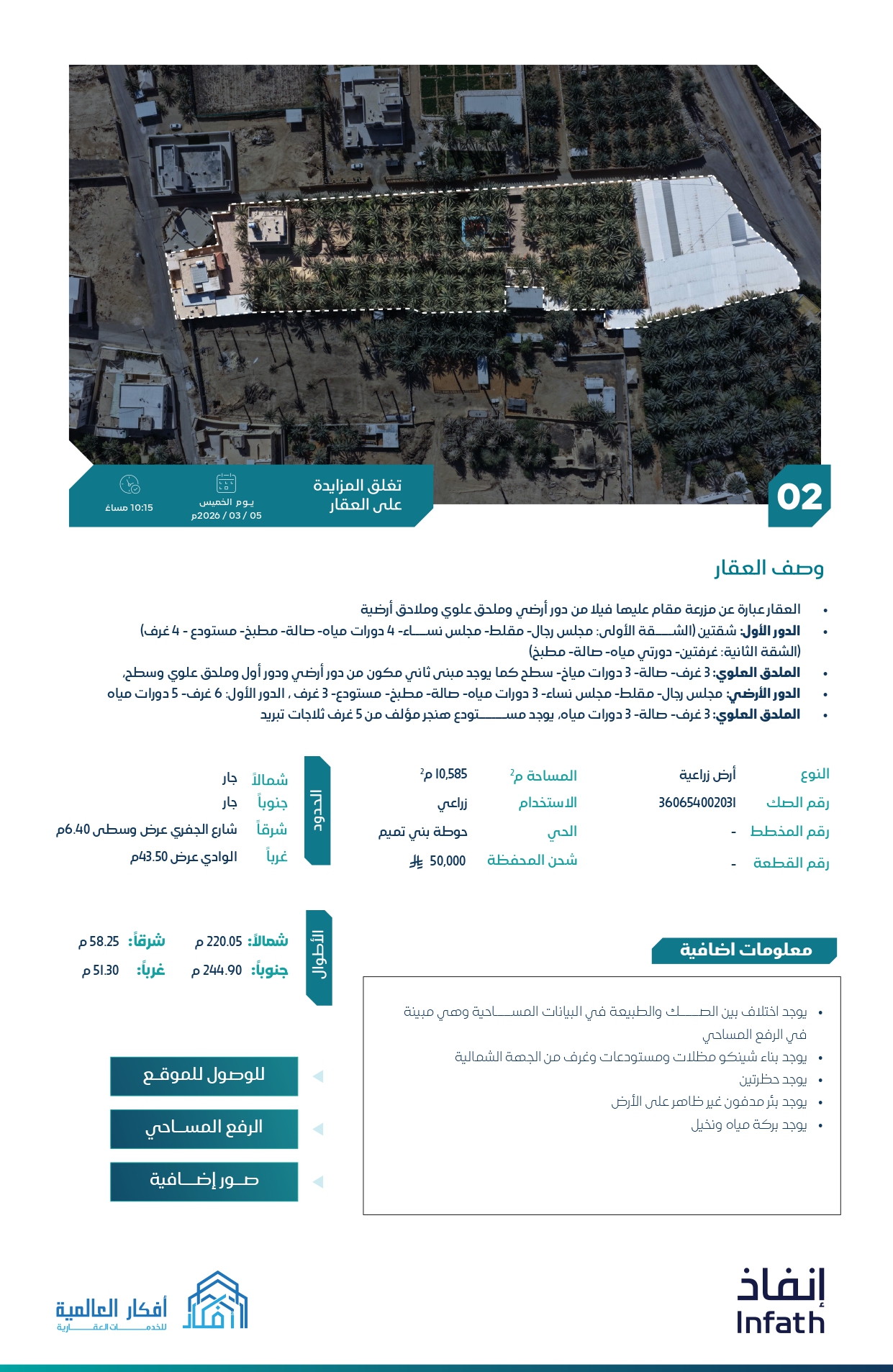 • يبداء المزاد في 3-3-2026م الساعة 10ص