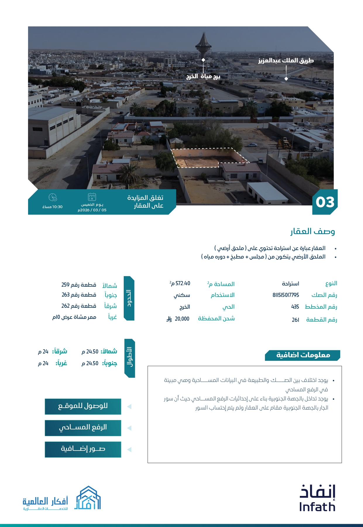 • يبداء المزاد في 3-3-2026م الساعة 10ص