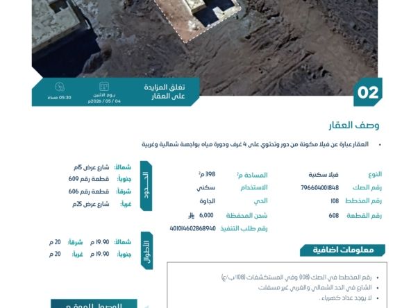 • رقم القطعة : 608