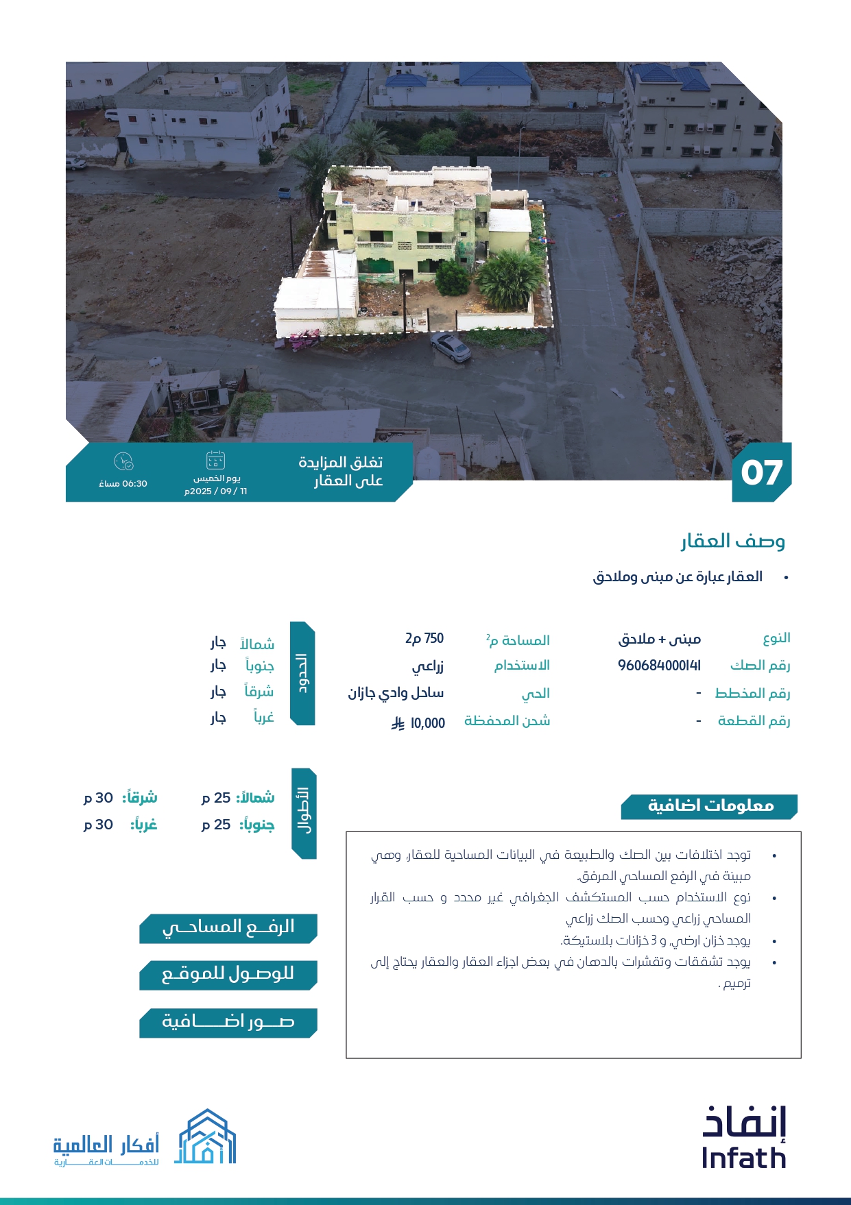 • يبداء المزاد في 9-9-2025م الساعة 10ص