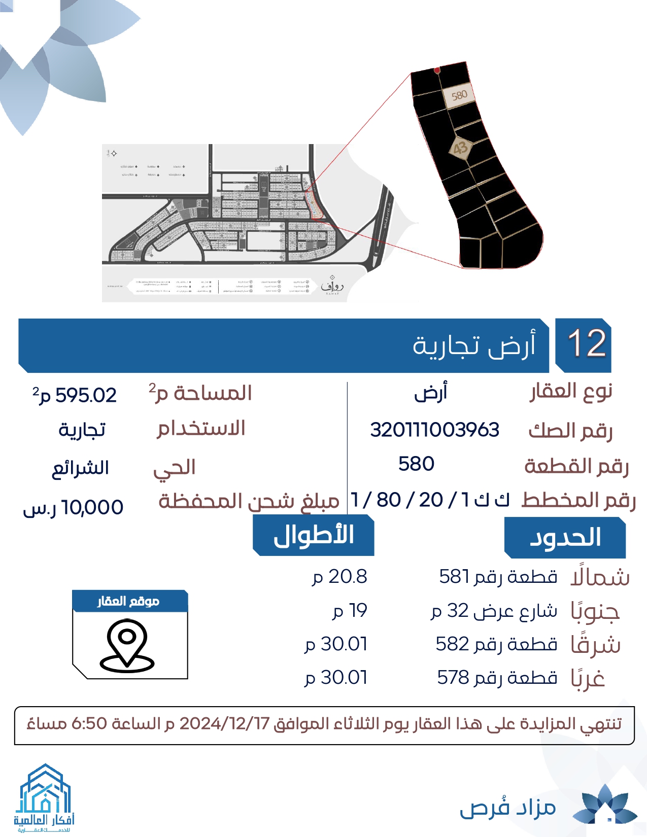 12 – ارض تجارية حي الشرائع 595.02م قطعة 580